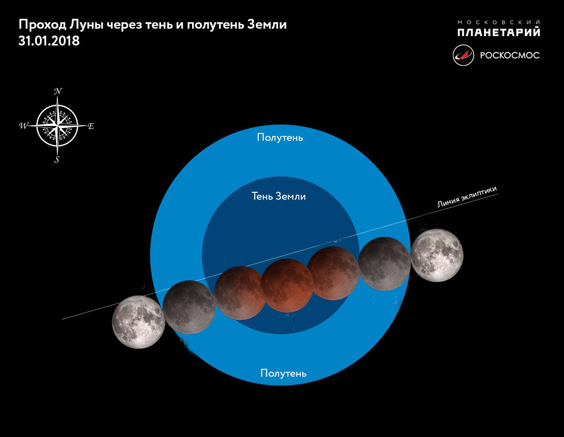 - В 14:48 мск Луна полностью погрузится в земную полутень и коснется земной тени — начало частного затмения. Луна начнет погружение в тень Земли.