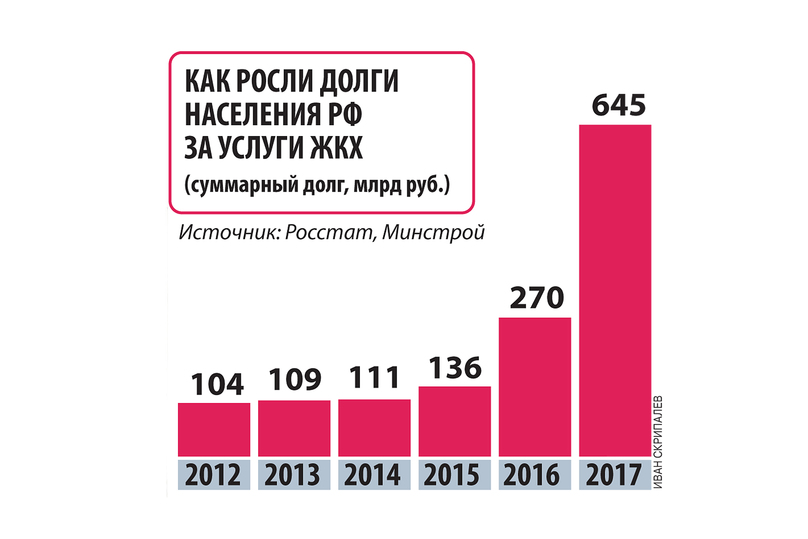 Между тем, согласно свежему выпуску «Мониторинга экономической ситуации в РФ» РАНХиГС, тарифы на жилищно-коммунальные услуги в течение четырех лет росли вдвое быстрее доходов. Что касается задолженности населения за жилищно-коммунальные услуги, то последние три года она растет угрожающими темпами. «В 2015 году она составила порядка 135 млрд рублей, в 2016-м — уже свыше 250 млрд рублей и более 600 млрд рублей в прошлом году», — отметил в разговоре с «МК» главный эксперт Центра аналитики и финансовых технологий Антон Быков.